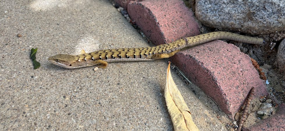Saw this little guy while out, and thought it was funny because I recently saw a story about Alligator Lizards at UCLA going indoors because of how hot it is around LA lately. Just...