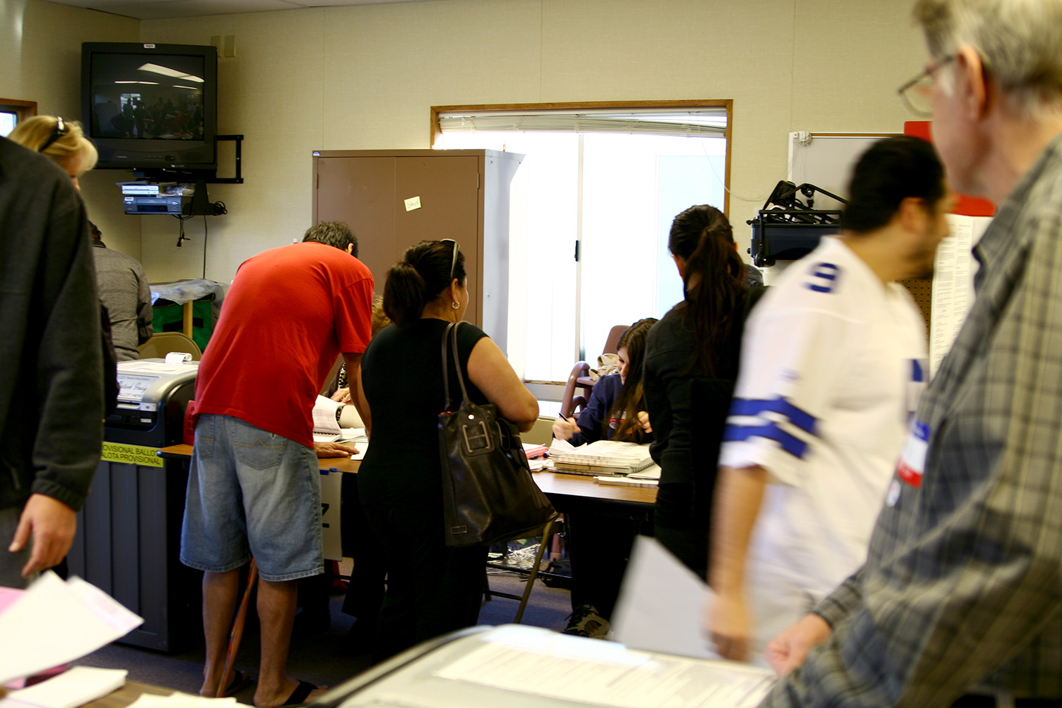 You know you are looking at an old photo when you see a CRT TV and a VCR. This was from 2008, during what I believe was a vote for the primaries in California. Right now on California we have a special election coming up, that all started because trump wanted to rig elections for congress in his favor, but convincing the state of Texas to redraw districts cutting out democrats out.