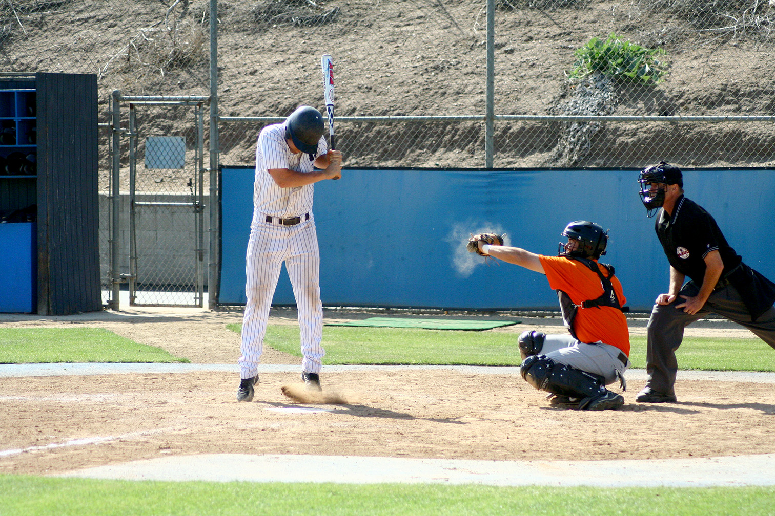Looking thought some old photos remembered Baseball season has started up again. I figured I could post an old photo from Moorpark from a game I covered. I saw this one and you can tell the batter was almost beaned. I also kind of like the dust that coming out off the catchers glove. Gives more of a effect of how hard of a throw that was.