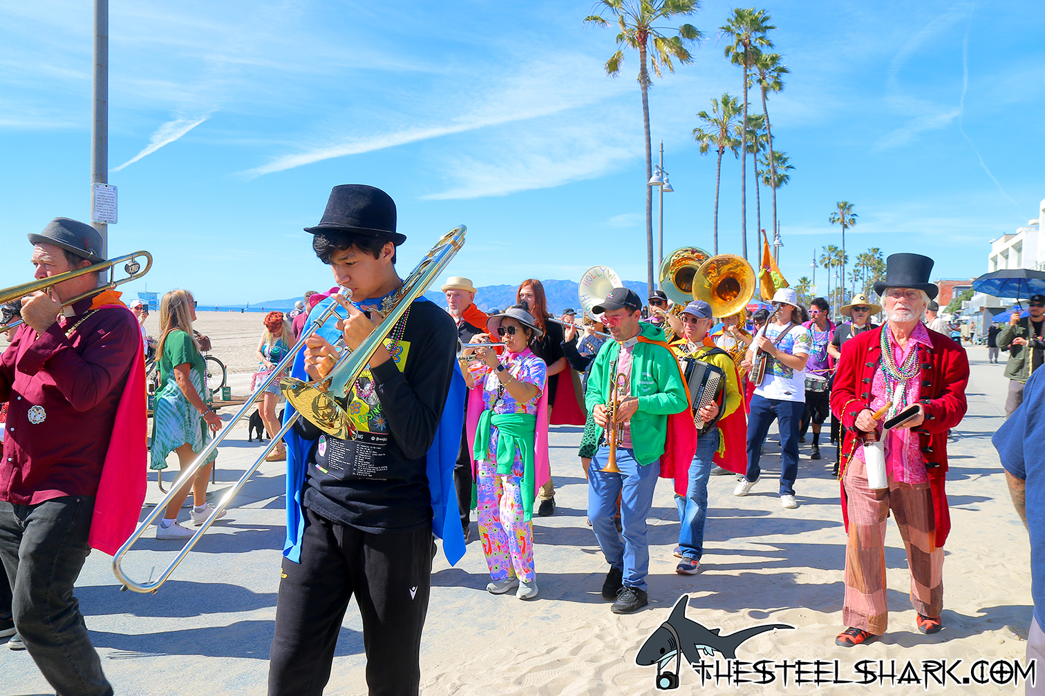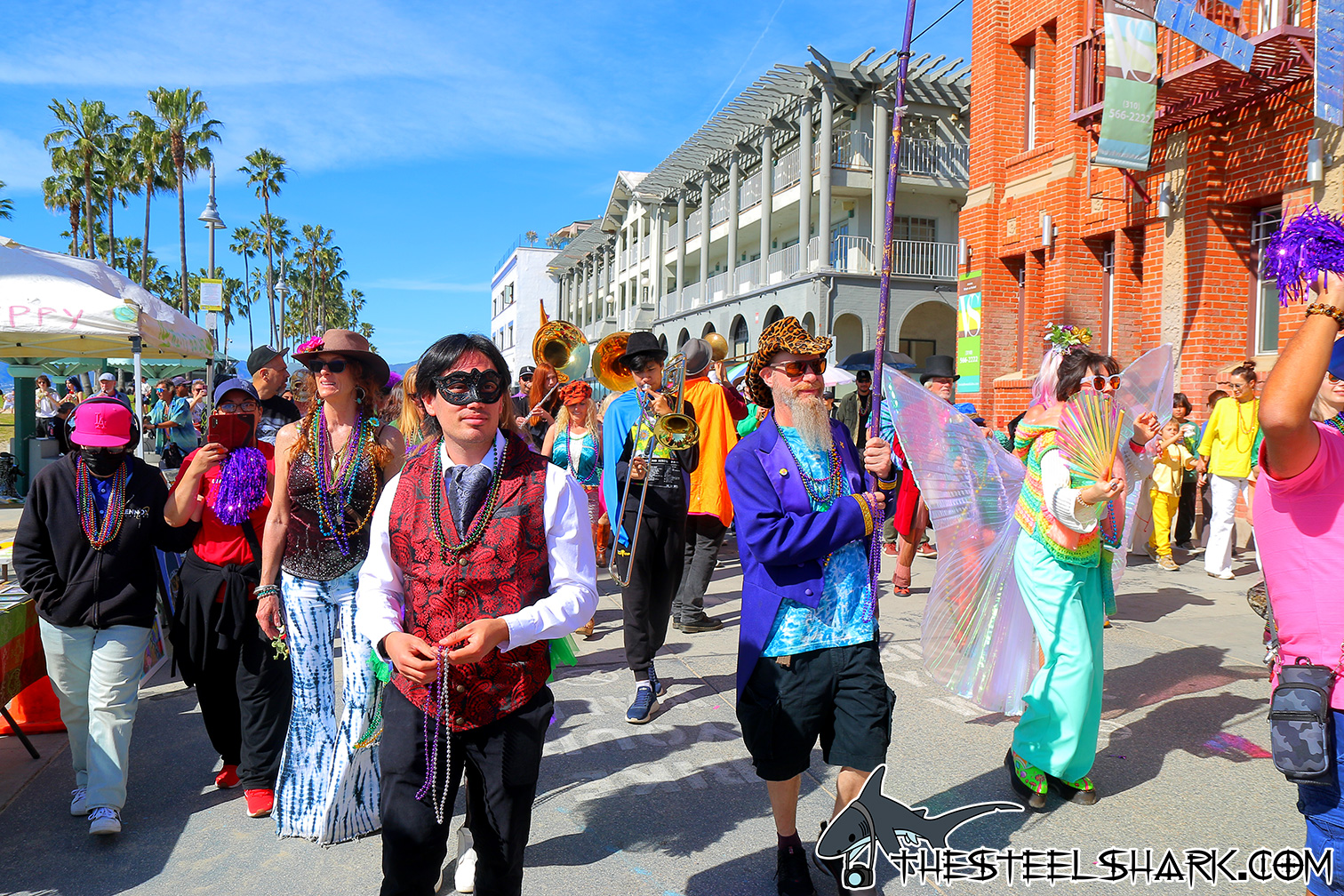 Took part of the Venice Mardi Gras again this year. I didn’t bring baby girl with me with time. Figured two events, one right after the other might be a bit much for her, but she’ll have her chance. The event was supposed to start around 12, but like the other years before I knew it was going to take about an hour to actually start, so I got there at around 12:45. We walked down the boardwalk and made it to the end at about 2:30.